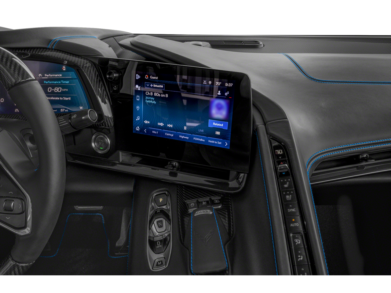 - Dark finish aluminum trim on speaker grilles, air vents, and console trim plate